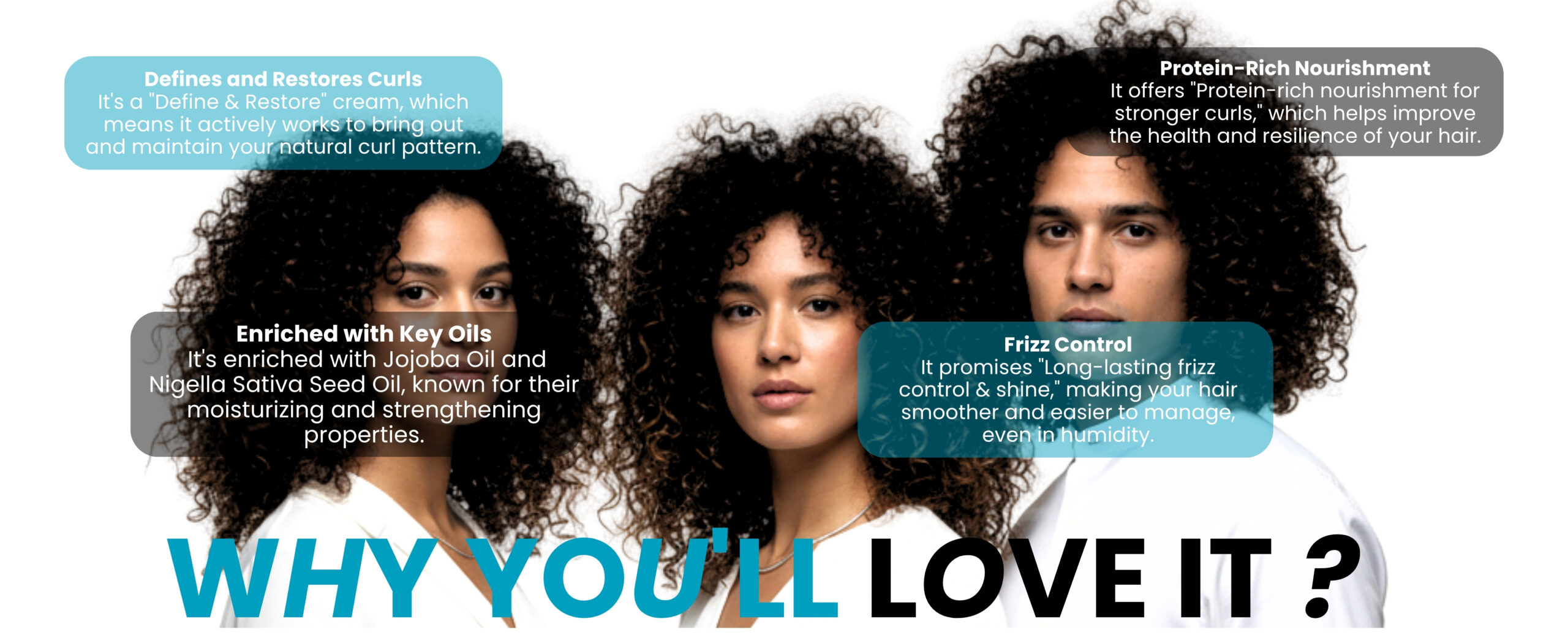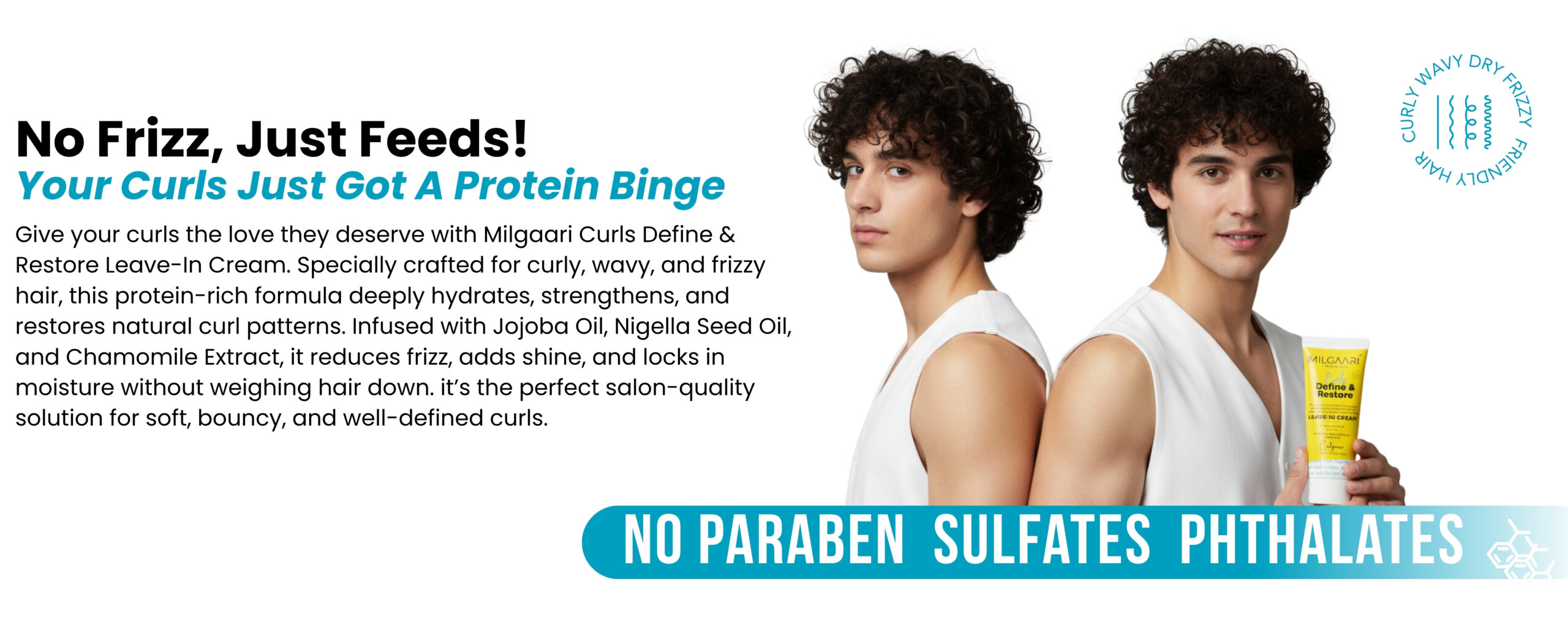 Curl Care Original price was: ₹1,349.00.₹289.00Current price is: ₹289.00. Add to cartLevel up your curl game! The Define & Restore Leave-In Cream is protein-rich nourishment for stronger, healthier curls. Enriched with Jojoba Oil and Nigella Sativa Seed Oil, this cream defines and restores your natural curl pattern, delivering long-lasting frizz control and brilliant shine. It is perfect for managing and revitalizing curly, wavy, dry, and frizzy hair.