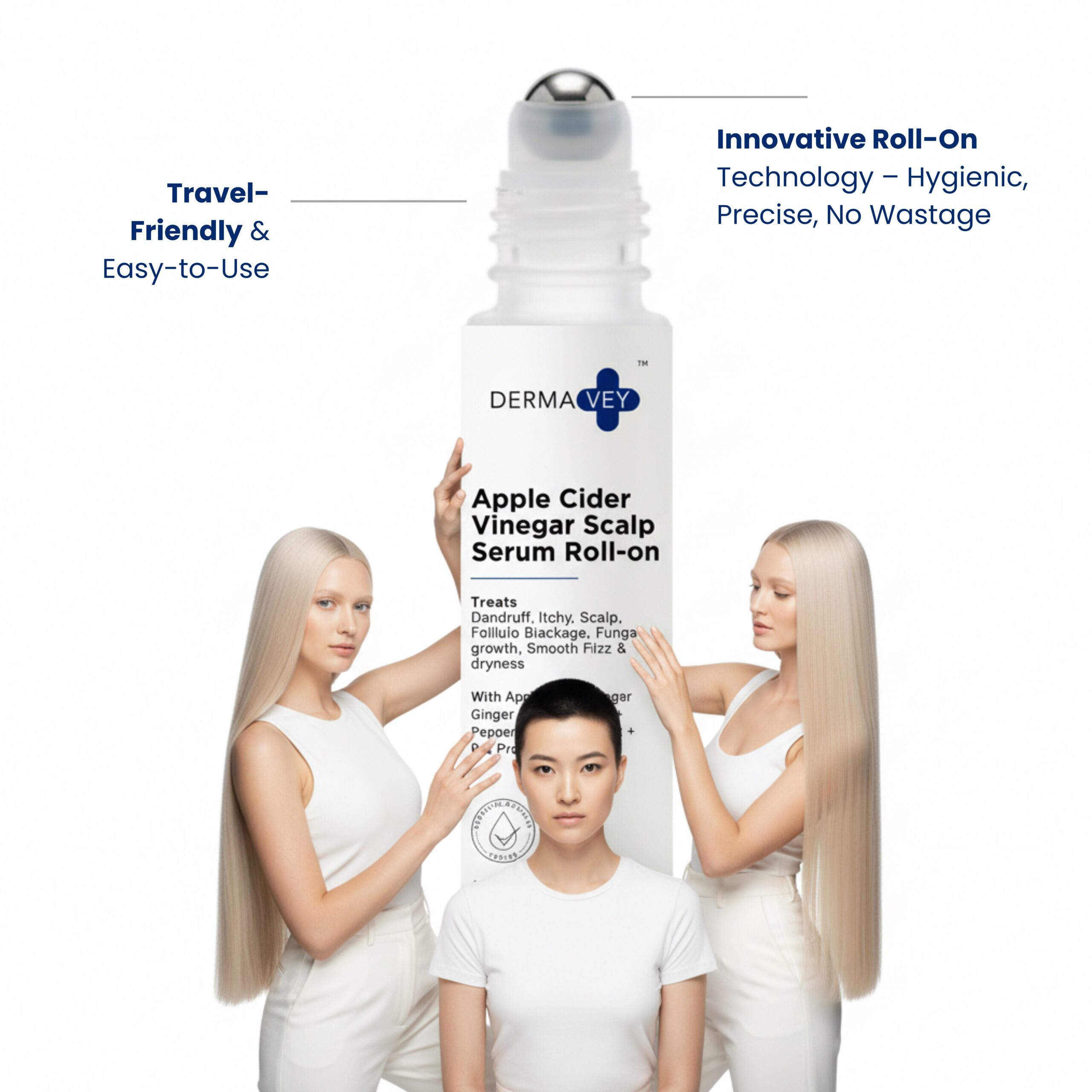 Targeted relief for a troubled scalp. This 10 ml roll-on serum treats Dandruff, Itchy Scalp, Follicle blockage, Fungal growth, Smooth frizz, & dryness. It is formulated with Apple Cider Vinegar, Ginger Root Extract %, Peppermint Leaf Extract, and Pea Protein Complex to deliver active ingredients directly where needed for scalp health and relief.