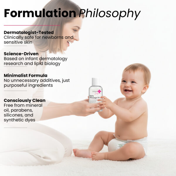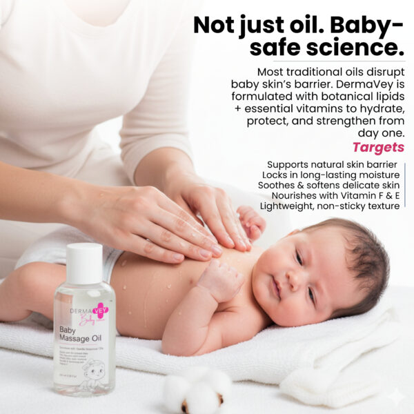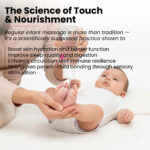 Skip the synthetic stuff! This Baby Massage Oil is enriched with Gentle Botanical Oils and skin-loving Vitamin F, offering a luxurious, smooth, and nourishing experience. Crafted for Delicate Baby Care, this oil helps support the skin’s natural barrier and ensures moisture retention. It’s a key step in promoting strong bones and irresistibly soft, healthy skin for your baby.