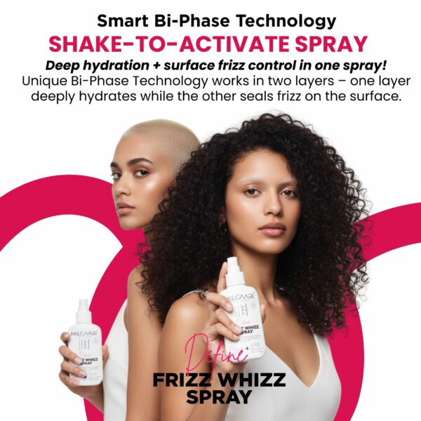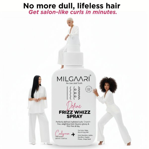 Curl Care Original price was: ₹1,349.00.₹425.00Current price is: ₹425.00. Add to cartFrizz? We don’t know her! This Frizz Whizz Spray is your Frizz-Free, Bouncy Hydrate Bi-Phase Mist. It’s a lightweight “Twist & Mist” formula that ensures perfectly defined, hydrated curls. Infused with Hemi-Squalene, Jojoba, Rice Bran Extract, Flower, and Grape Seed, it provides a crunch-free, weightless hold, leaving your curls glossy and frizz-free all day.