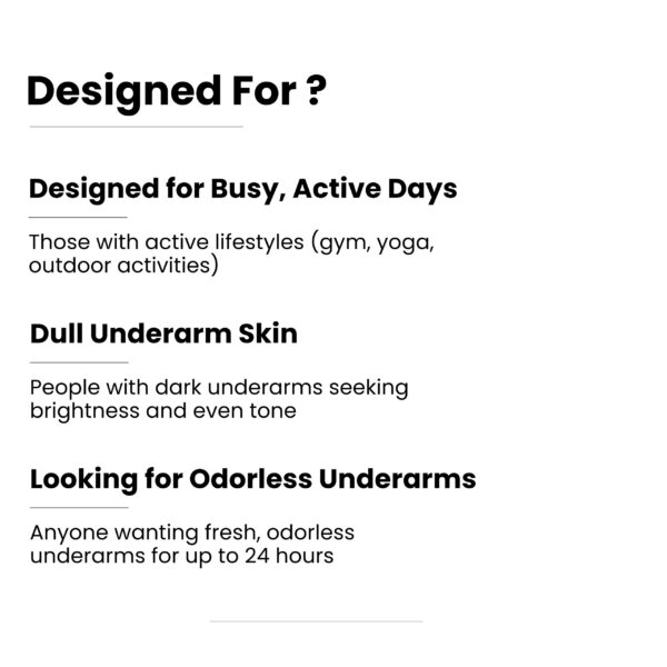 - CONVENIENT TO USE: Our roll-on design offers a hassle-free and straightforward application, making it an ideal choice for daily use. It glides on smoothly and swiftly, leaving no sticky or greasy residue, ensuring you feel fresh and dry throughout the day. With consistent use, you’ll observe a more even and radiant underarm area.