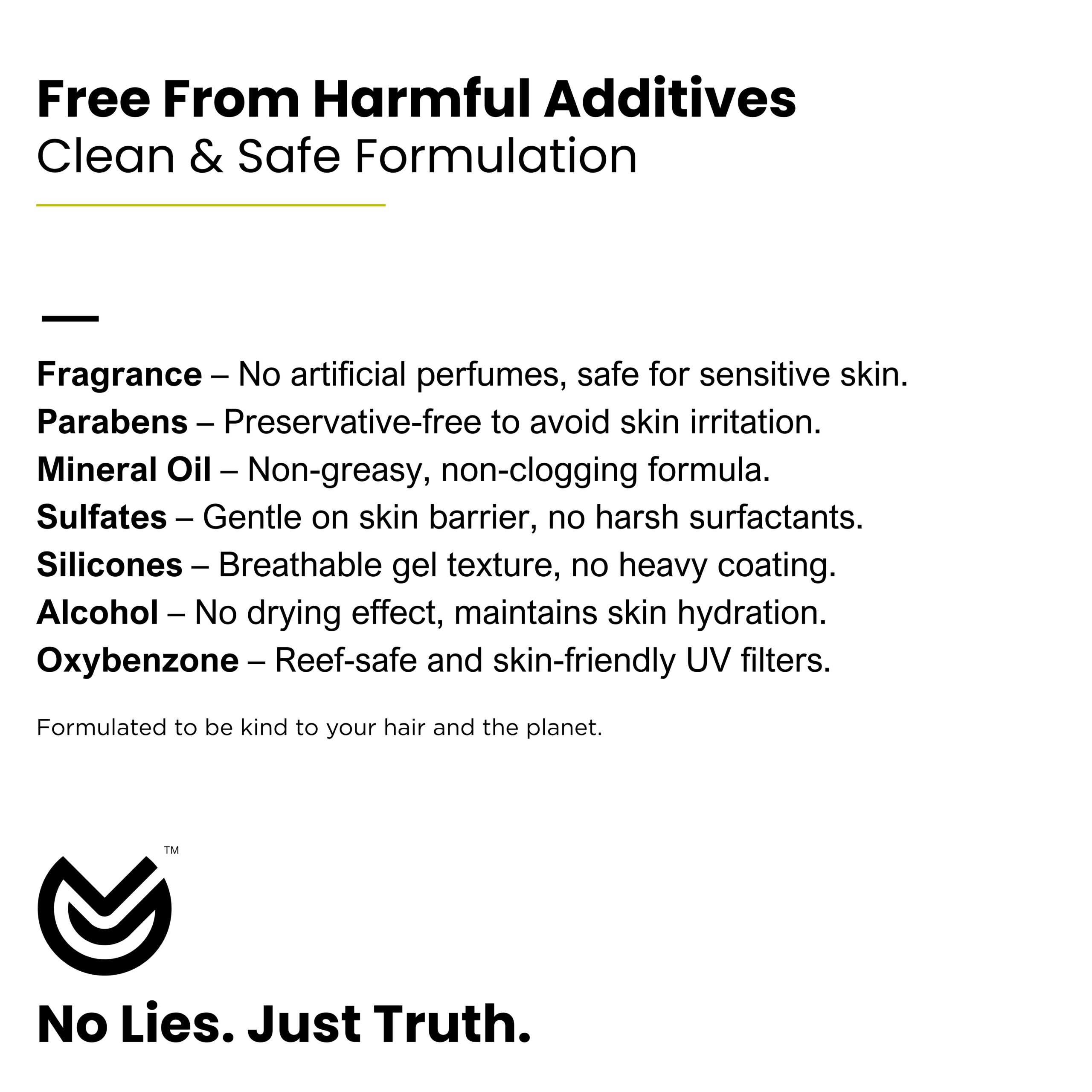 - Lightweight & Gel based Easy absorbs formula , Non sticky & No white cast , Safe ,Hydration,Gentle & Water resistant , Fragrance free , Dermatologist tested , Spreads easily like a lightweight moisturizer and does not leave behind unwanted residue or heavy feeling