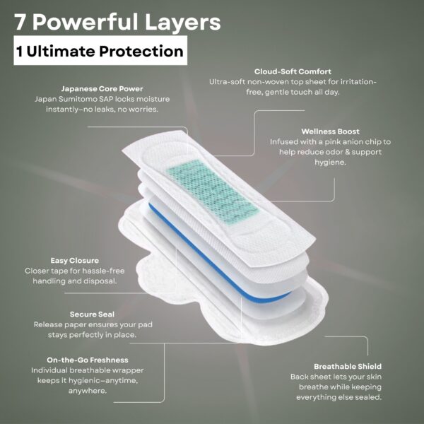 • High-Absorbency Design: Engineered for maximum liquid retention, these pads keep you dry and prevent leaks—key features of quality sanitary pads.