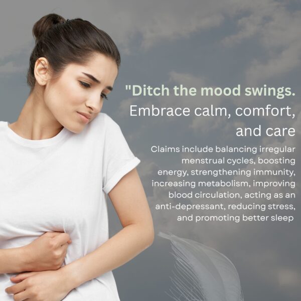 • Balancing menstrual cycles, boosting energy, metabolism, immunity, enhancing mood, reducing stress, improving sleep, reducing heavy flow or vaginal irritation, and regulating hormone levels