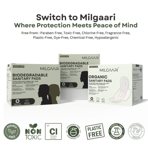 Rethink your routine! These Biodegradable Sanitary Pads are ultra-thin and feature Dual Wings and Gel Lock Technology for superior absorption. They provide Ultra Leak Protection and 100% Rash-Free Comfort with 100% Cotton. The built-in Anion Chip ensures odor neutralization and stops bacterial and fungal growth, promoting balanced pH and hormone levels with non-toxic, skin-safe comfort.