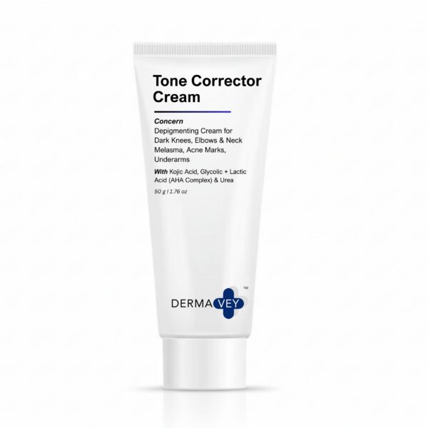 Hello, even-toned skin! This Tone Corrector Cream is a depigmenting solution that visibly lightens and corrects stubborn dark spots and hyperpigmentation. It is formulated with Kojic Acid, Glycolic + Lactic Acid (AHA Complex), and Urea to treat dark areas on the knees, neck, elbows, underarms, and acne marks. It promotes a visibly radiant and even complexion.